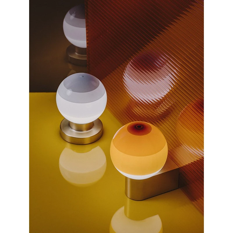 Kugel aus mundgeblasenem Glas, glänzend weiß mit lackierten Schichten